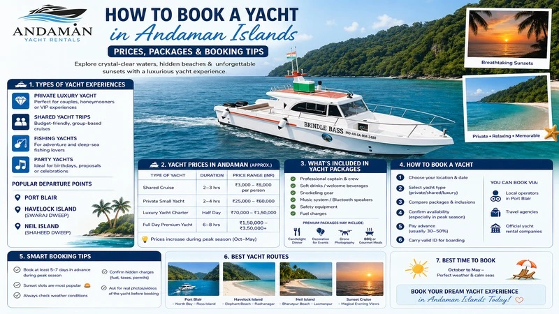 Maybe it is the honeymoon, a family holiday, a party, or even a personal adventure, but taking a trip on a yacht is an experience that will be remembered forever and will make your trip to the Andaman Islands unforgettable. Nevertheless, one should be aware of the kinds of yachts, their rental prices, packages, permits, and booking hints before committing to a yacht. This is the guide that will assist you in knowing all you need to know about yacht booking within the Andaman Islands.